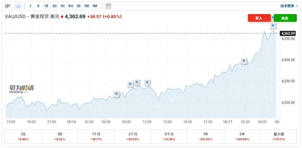 智通财经APP获悉,由于对经济中信贷质量的担忧加剧以及地缘政治紧张局势推动了避险需求增加,再加上投资者纷纷押注美联储今年可能实施一次大幅降息股票配资平台网,黄金与白银价格均触及历史新高。数据显示,周五亚洲早盘,现货黄金一度上涨1.2%,至每盎司4379.96美元,创下历史新高,并有望创下自2020年以来的最大单周涨幅。现货白银则小幅上涨,触及每盎司54.3775美元的历史高位后回吐了部分涨幅。